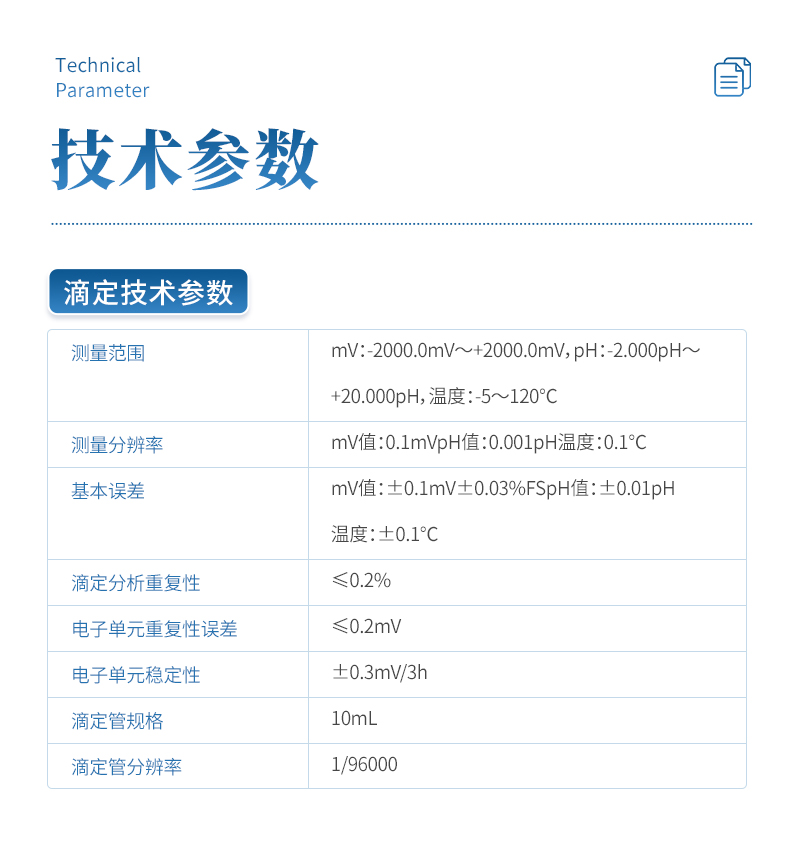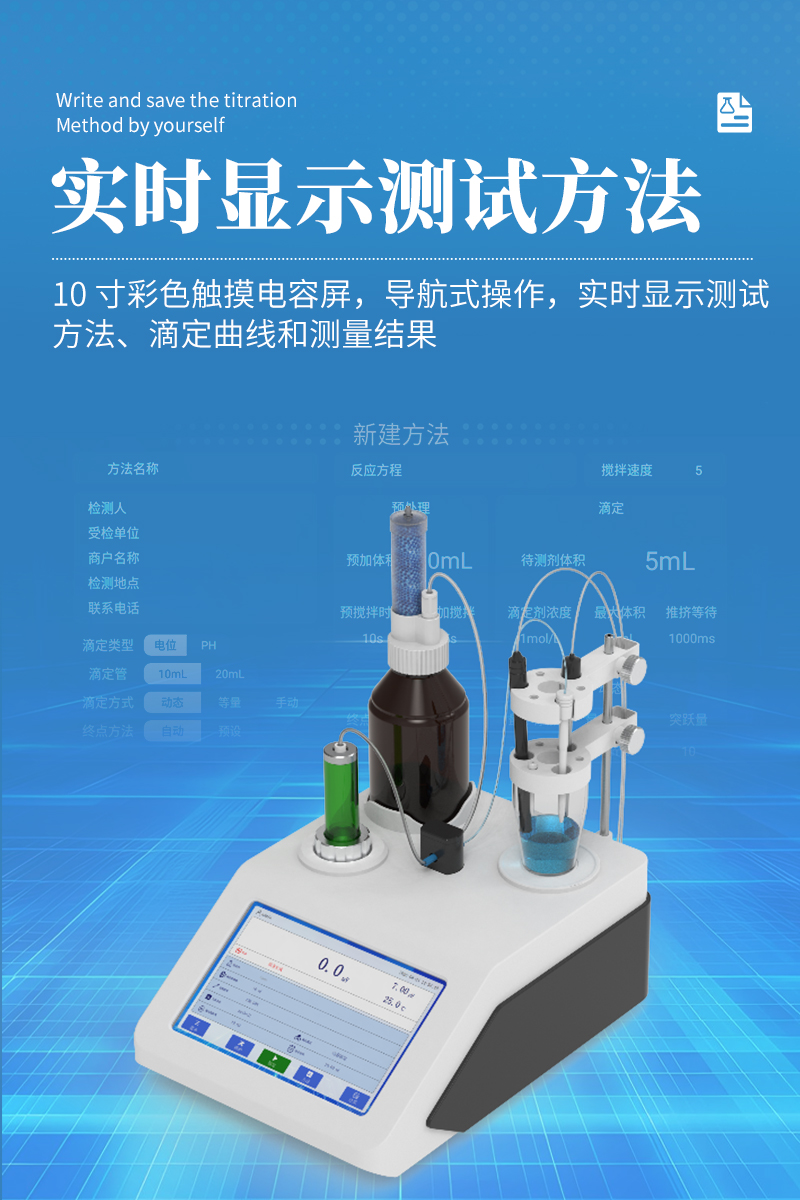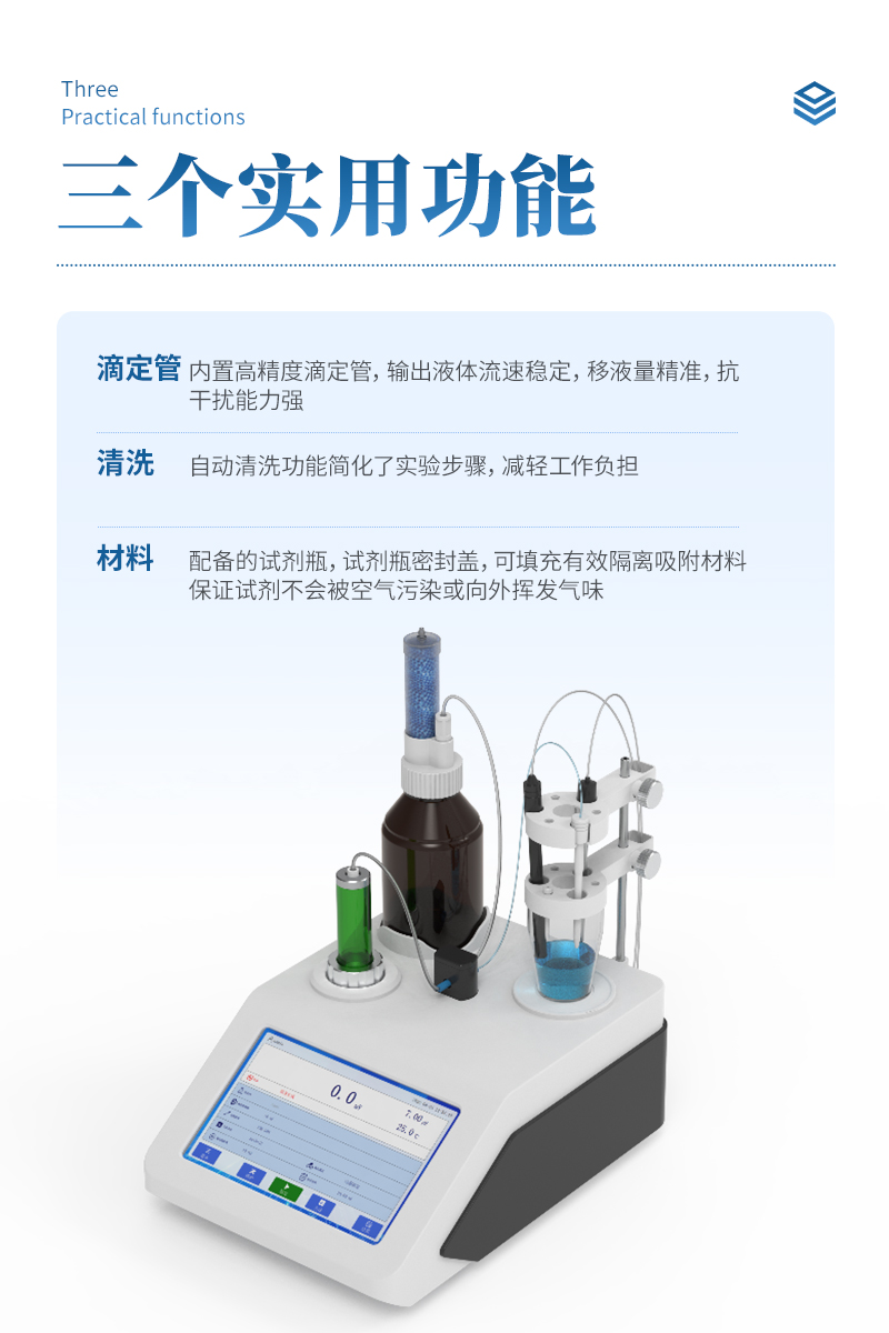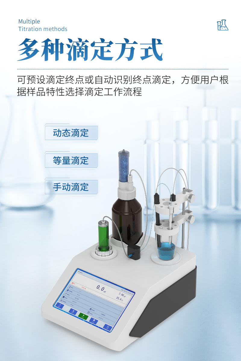 6. 操作簡單,高效快捷,檢測過程無需人為干預,操作者的健康和環境得到了**保障,同時節省了實驗員用于測試的時間成本,能夠快速完成滴定分析,減少實驗時間,提高實驗效率。