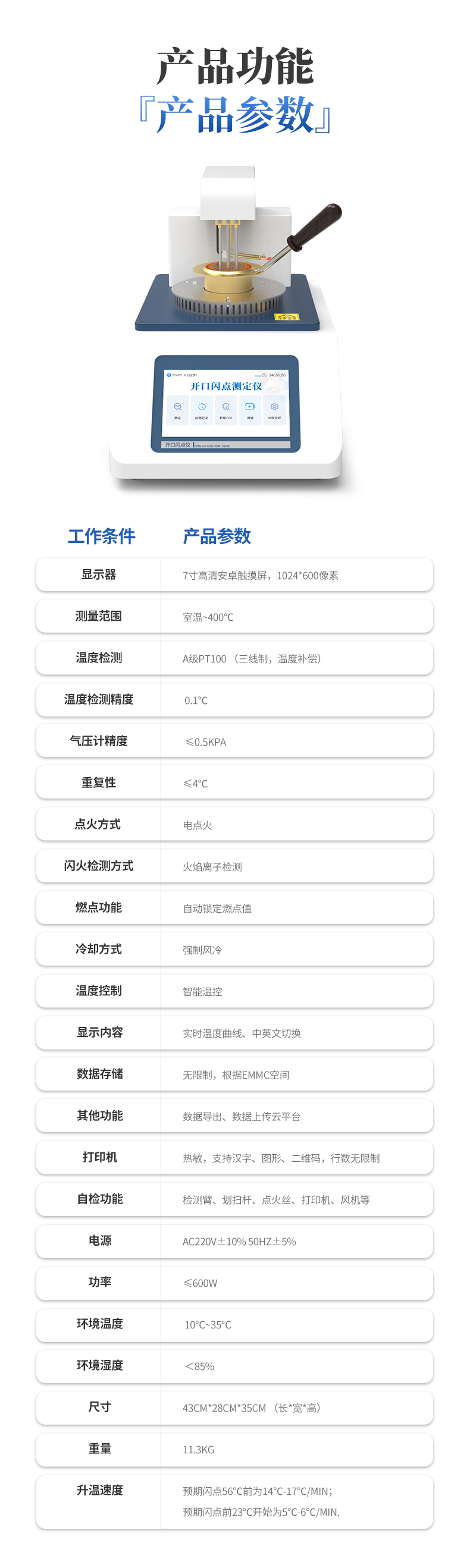 | 升溫速度 | 預(yù)期閃點(diǎn)56℃前為14℃-17℃/min;預(yù)期閃點(diǎn)前23℃開始為5℃-6℃/min. |