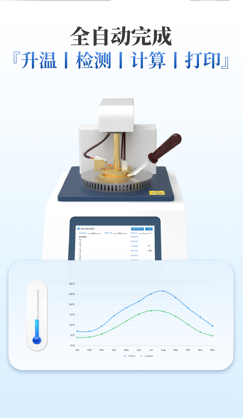 儀器按照GB/T 261-2021方法規定的升溫曲線加熱,溫度接近預期閃點值時自動點火,當出現閃點時儀器自動鎖定結果,并顯示和打印,同時啟動風機自動對加熱器進行冷卻。