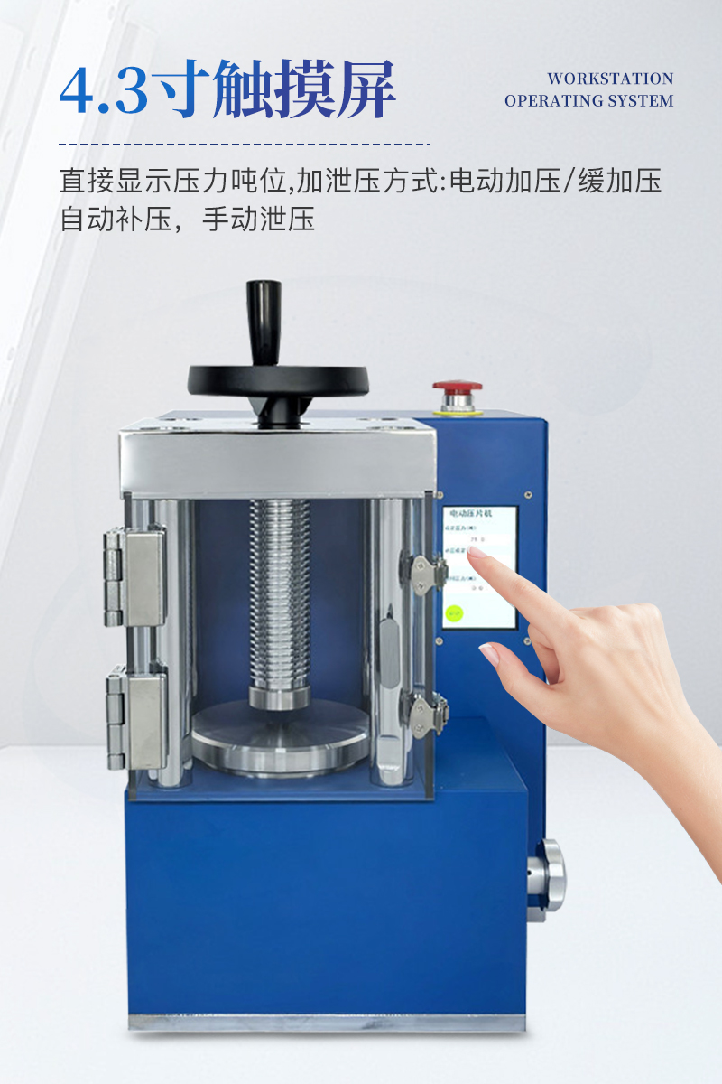 電動壓片機該機相比手動壓片機,工作效率大大提高,4.3寸觸摸液晶屏直接顯示壓力噸位;配以特定模具,可將各種粉末樣品壓制成試片用于科學研究分析檢測等,也可作為普通壓力機使用,應用極其廣泛。