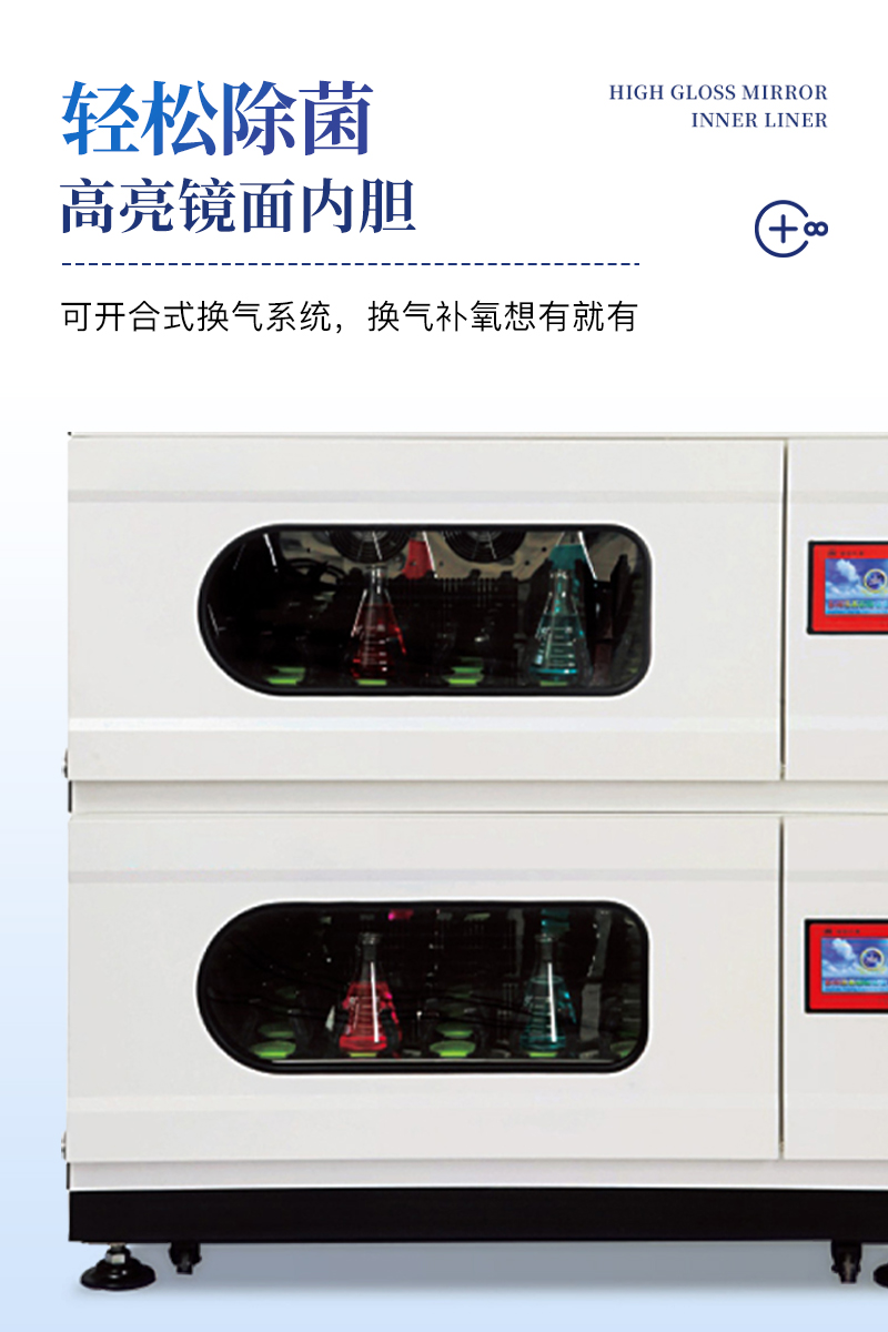 雙層疊式恒溫振蕩搖床人性化可視操作界面,溫馨易懂,全程低壓安全控制,安全呵護(hù)更到位,可開合式換氣系統(tǒng),換氣補(bǔ)氧想有就有,高亮鏡面內(nèi)膽,除菌更輕松。